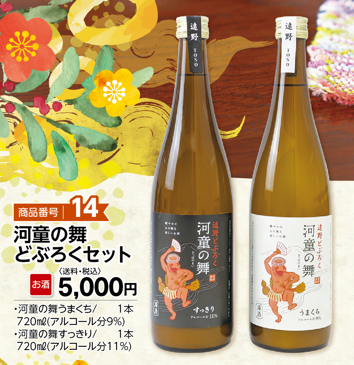 遠野味紀行2025冬ギフト 商品番号14 河童の舞どぶろくセット 販売価格 5,000円(税込み) 会員価格 (税込み) 通常価格 (税込み) 在庫 商品コード 251114 JANコード 数量 - + 販売期間外のため注文いただけません。 キャンペーン 遠野味紀行2025冬ギフト 個別送料 0円 注文年齢制限 20歳 ~ 注文手続き画面にて、生年月日を入力いただきます。 販売期間 2025/11/01 09:00~2026/01/01 00:00 ツイートする シェアする 株式会社 遠野ふるさと商社 [お問い合わせ]TEL.0198-62-0888(10:00~17:00) 2025年11月 日 月 火 水 木 金 土 1 2 3 4 5 6 7 8 9 10 11 12 13 14 15 16 17 18 19 20 21 22 23 24 25 26 27 28 29 30 2025年12月 日 月 火 水 木 金 土 1 2 3 4 5 6 7 8 9 10 11 12 13 14 15 16 17 18 19 20 21 22 23 24 25 26 27 28 29 30 31 発送休業日 ショッピングガイド 特定商取引法に基づく表記 個人情報保護方針 送料について 会員規約 お問合せ