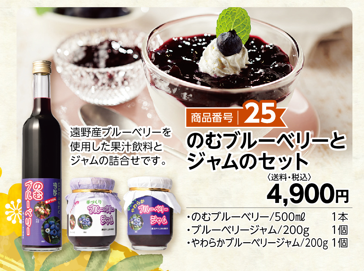 遠野味紀行2025冬ギフト 商品番号25 のむブルーベリーとジャムのセット 販売価格 4,900円(税込み) 会員価格 (税込み) 通常価格 (税込み) 在庫 商品コード 251125 JANコード 数量 - + 販売期間外のため注文いただけません。 キャンペーン 遠野味紀行2025冬ギフト 販売期間 2025/11/01 09:00~2026/01/01 00:00 ツイートする シェアする 株式会社 遠野ふるさと商社 [お問い合わせ]TEL.0198-62-0888(10:00~17:00) 2025年11月 日 月 火 水 木 金 土 1 2 3 4 5 6 7 8 9 10 11 12 13 14 15 16 17 18 19 20 21 22 23 24 25 26 27 28 29 30 2025年12月 日 月 火 水 木 金 土 1 2 3 4 5 6 7 8 9 10 11 12 13 14 15 16 17 18 19 20 21 22 23 24 25 26 27 28 29 30 31 発送休業日 ショッピングガイド 特定商取引法に基づく表記 個人情報保護方針 送料について 会員規約 お問合せ